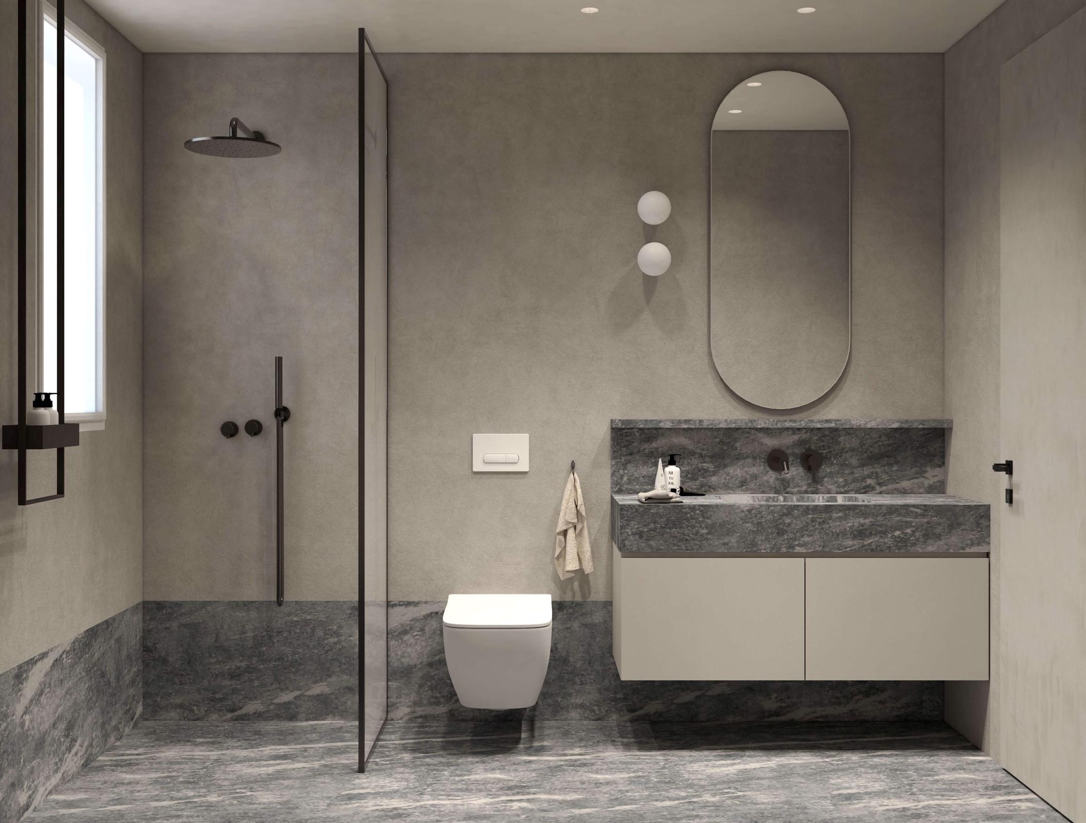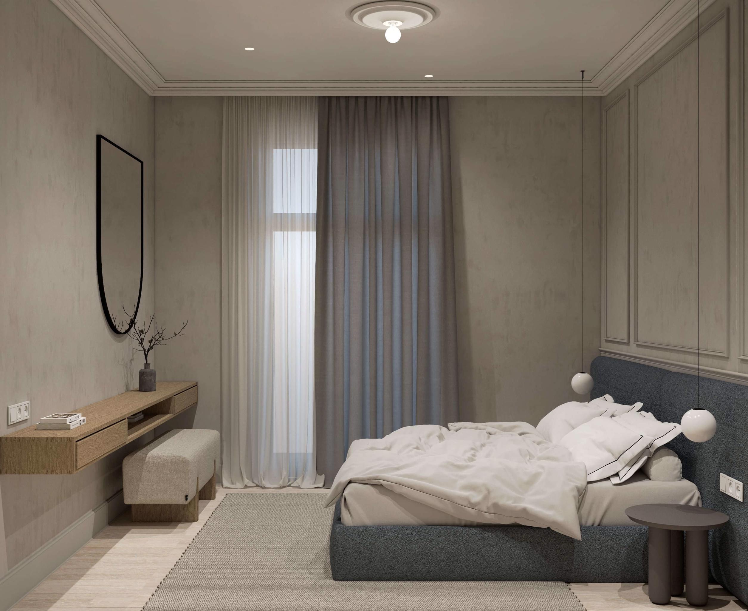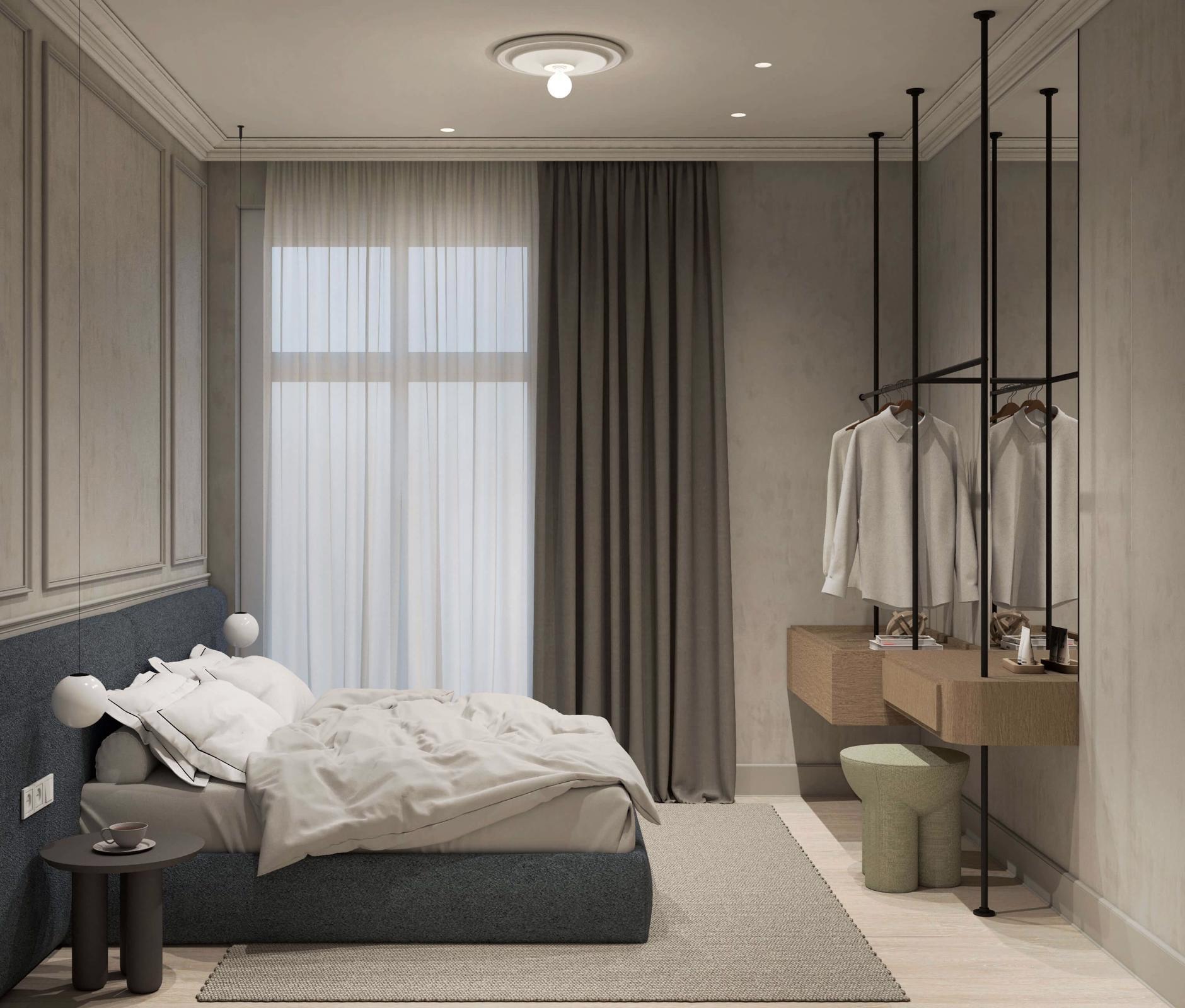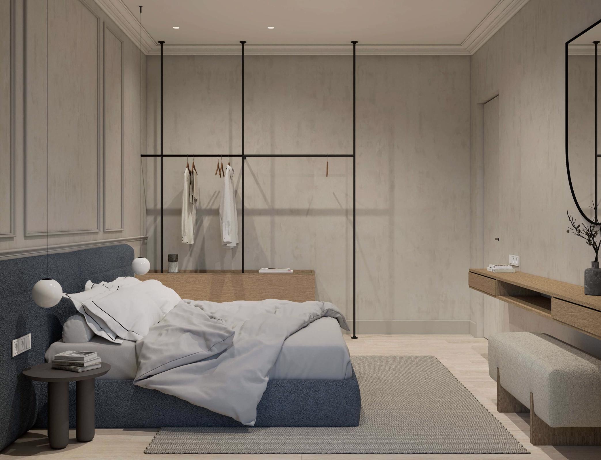 The living area is elegantly furnished with designer pieces and a Smart TV, while the fully equipped kitchen or kitchenette provides all the comforts of a modern apartment. The blend of minimal design, wood, marble, and soft textures enhances the feeling of harmony and understated luxury.
