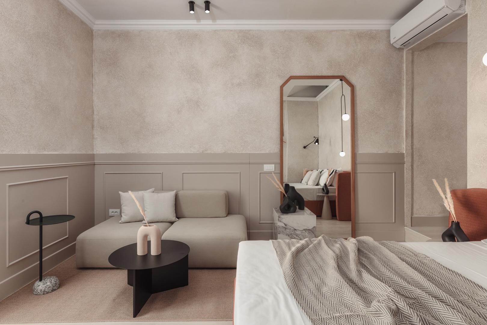 Discover the ultimate accommodation experience in a luxurious suite that combines contemporary design with refined elegance. Earthy tones, premium fabrics, and carefully selected details create an atmosphere of tranquility and high aesthetics.